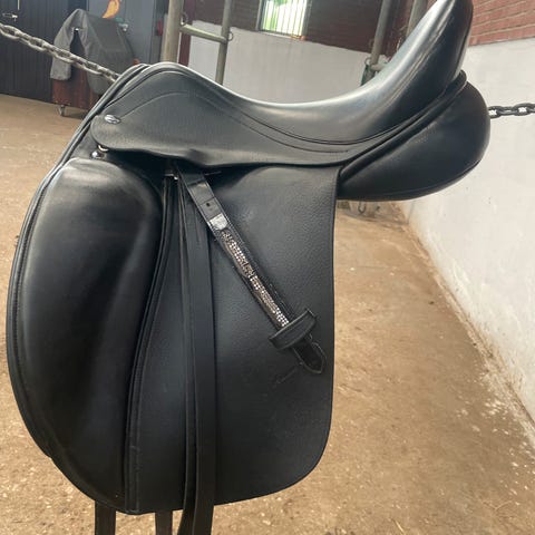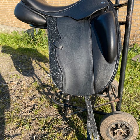 En engelsk mono kvalitetssadel, med uldstopning og justerbar bom.