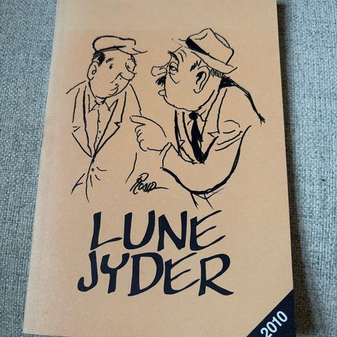 Lune Jyder 1984 er en tegneseriebog med sort-hvide tegninger, der illustrerer forskellige scener og karakterer i en humoristisk stil Bogen indeholder flere sider med håndtegnede illustrationer, som skildrer dagligdags situationer og samtaler. Materialet er papir, og bogen er velegnet til læsere, der interesserer sig for klassiske danske tegneserier og humoristiske fortællinger. 25 kr +porto