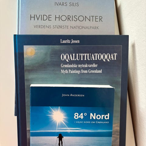 Lauritz Jessen, Oqaluttuatoqqat bog med grønlandsk myte maleri. Bogen har et blåt omslag med illustration af en fugl og et landskab med is og hav. Indeholder tekst og illustrationer relateret til grønlandske myter. Sender ikke for køb under 200 kr.