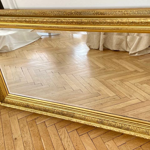 Smukt og dekorativt spejl med solid forgyldt træramme og fine stukdetaljer.