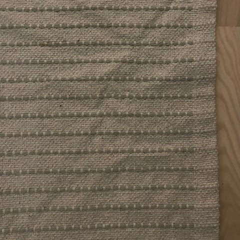 2 stk. JYSK AKSFRYTLE tæpper med dimensionerne 135x190 cm. Tæppet er hvidt med et sort geometrisk mønster. Materialet er blødt og velegnet til brug i stuer eller soveværelser for ekstra komfort og varme.