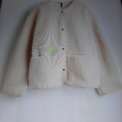 Lækker oversize teddy-jakke med hætte: Blød og varm teddyjakke fra H&M i imiteret lammeuld.