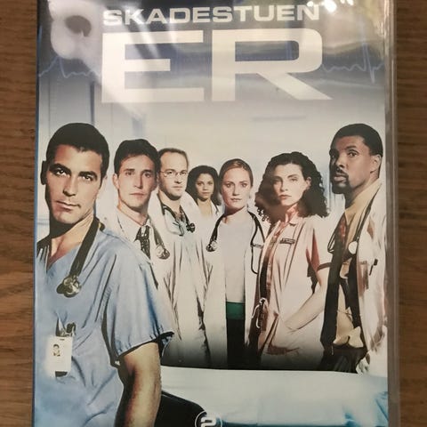 ER Skadestuen DVD-sæt med sæson 1 til 4. Serien er en medicinsk dramaserie, der følger personalet på et travlt skadestueafsnit. Hver DVD indeholder flere episoder, og sættet er velegnet til seere, der ønsker at følge udviklingen i serien over flere sæsoner.