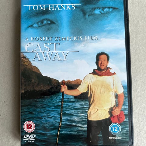 DreamWorks Cast Away DVD film featuring Tom Hanks, directed by Robert Zemeckis. The DVD includes bonus material and is in standard DVD format suitable for home viewing.