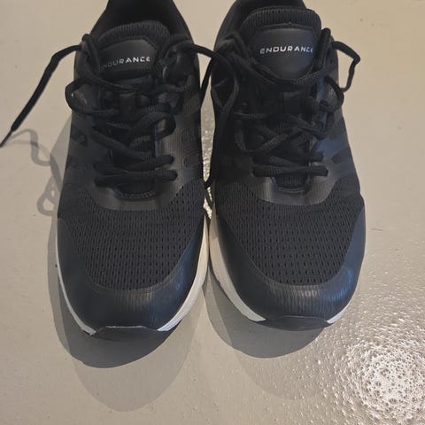 Skoene er designet til løb og har snørelukning. Materialet fremstår som en kombination af tekstil og syntetiske materialer, egnet til sport og daglig brug.