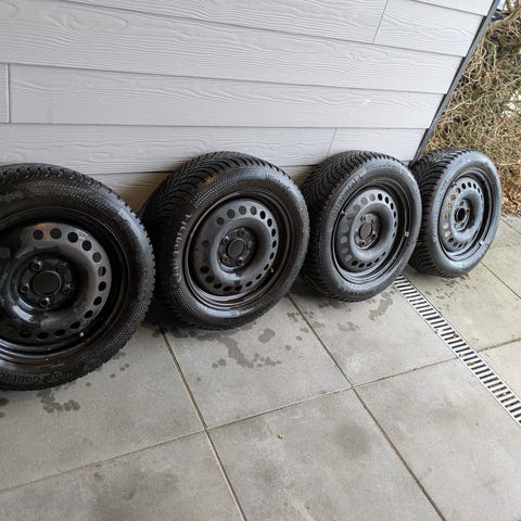 Brugt til en KIA ceed. Har kørt 3 vintre i alt ca. 3000 km. Rigtig fin stand, med stålfælge, møtrikker og dæktrykssensor.