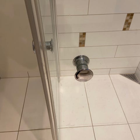 Interglas sikkerhedsglas med en tykkelse på 8 mm, hærdet glas. Glasset er transparent let tonet har kun været monteret i 2 dag da røren ikke passe 100% efter min smag så fik leveret et nyt