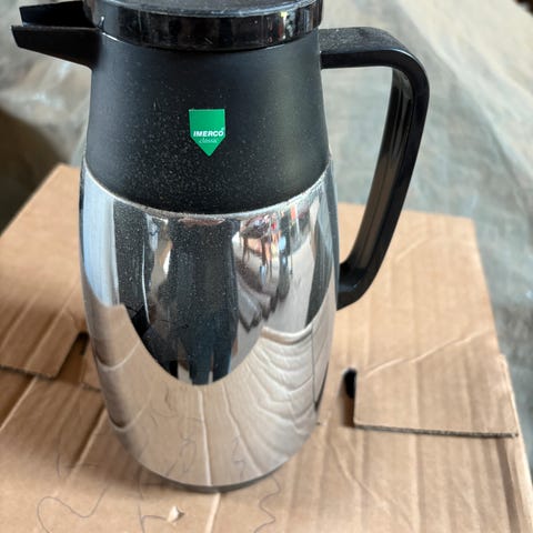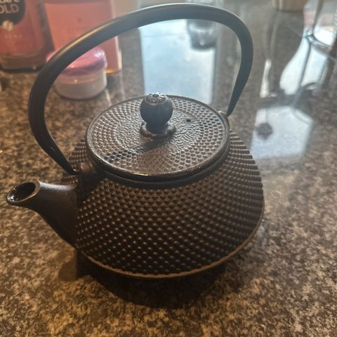 Lille tekande. Måler ca 17cm i længden, 11cm i bredden og 8cm i højden, inkl håndtag mm.
