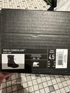 Sorel Youth Cumberland børnestøvler i størrelse 36, sort farve, unisex design. Støvlerne har en robust sål til godt greb og er designet til at holde fødderne varme og tørre i koldt vejr. Materialet kombinerer tekstil og gummi for holdbarhed og vejrbestandighed.