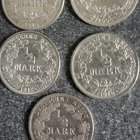 Tyske sølv. 1 mark 1925 E 1925 J og 1926 A og 1926 E og 1925 A.