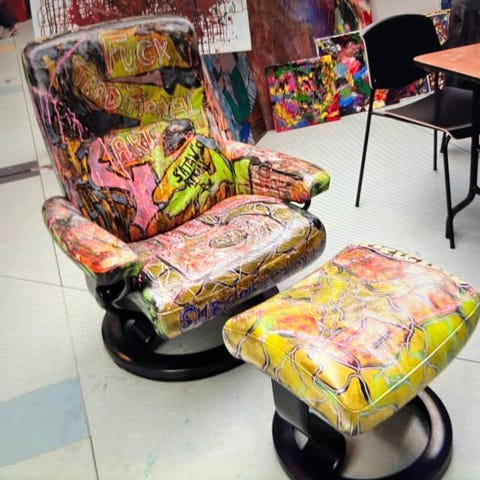 Spray paint på papir indrammet med UV-glas.