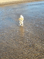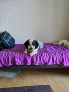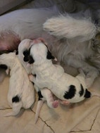 Moderen er den skønneste lille Dansk svensk/Havaneser blanding (50/50). Hun er en lille Nips på ca 5 kg og er født og opvokset hos os, sammen med sin mor og sine ældre søskende, som også kan ses ved besøg.