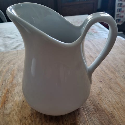 Porcelæn, Kande 1 l., Pillivuyt, Pillivuyt kande gammeldags. Rummer 1 liter. Kan bruges til alt fra servering af vand, mælk, juice, drinks og meget mere. Flot klassisk design.