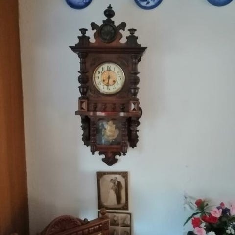 Urværk og kæder er ny renset og smurt af urmager og der er påsat nye visere og møtrik + 2 nye kroge på kæderne.