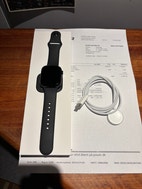 Apple Watch Series 10 42mm. Smartwatch med sort rem. Enheden har en større skærm sammenlignet med tidligere modeller og et tyndere design. Funktionen inkluderer søvnsporing og notifikationer ved søvnapnø. Opladning kan nå op til 80% på cirka 30 minutter. Produktet leveres med original oplader og emballage. ure er køb 17-10-2025 sælger pga. fejlkøb