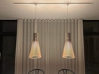 Der er ca 75 cm ledning på dem og ca 135 cm fra loft til bund af lampe.