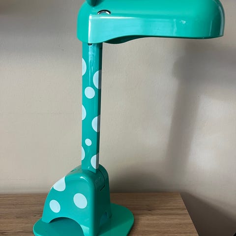 Rigtig flot retro sollampe fra 1963 med vækkeur. Lampen og uret virker helt fint, og står ret flot trods sin alder. Den har selvfølgelig lidt brugsspor, men ikke noget der irritere øjet. Lampen er 40 cm høj, og bruger e27 pære.