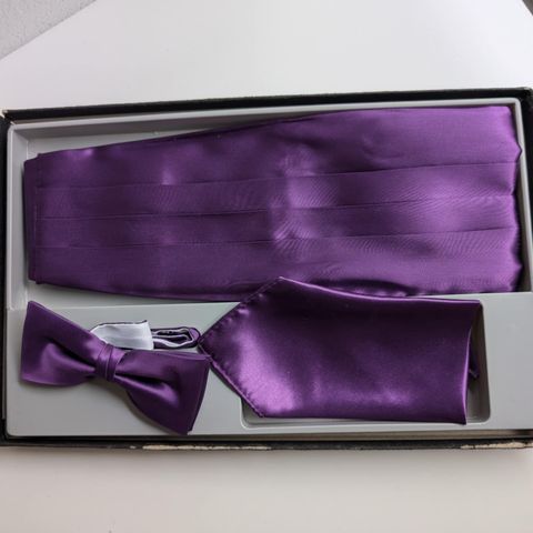 Sættet indeholder et skærf og en butterfly i satin. Farven er dyb rød. Med sløjfe og diverse klude. I praktisk opbevarings æske. ,Bemærk at mail, chat og beskeder ikke besvares, og varen skal købes på knappen "Gå til varen"