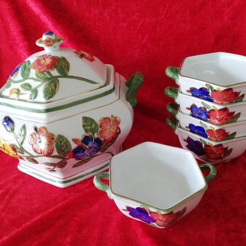 Den har en formet kant og detaljeret bemaling med et klassisk mønster i blå nuancer. Skålen er designet til at være både funktionel og æstetisk tiltalende.,Bemærk at mail, chat og beskeder ikke besvares, og varen skal købes på knappen "Gå til varen"