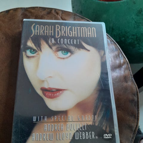 Sarah Brightman In Concert DVD featuring a live performance at the Royal Albert Hall. Includes special guests Andrea Bocelli and others. Contains a setlist of songs performed during the concert. The DVD is in standard size format with video and audio specifications suitable for playback on compatible DVD players.