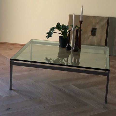 Velholdt sofabord i kirsebærtræ med glasplade. Ny pris 15.000 kr. Sælges grundet pladsmangel.