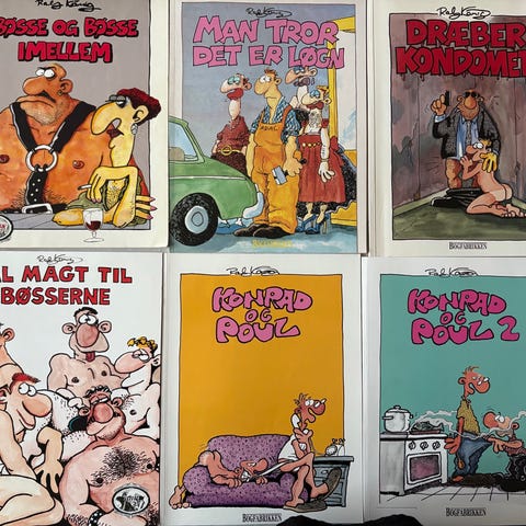 'Den Følsomme Mand', 'Pretty Baby' og 'Kvinders Oprør'. Bøgerne indeholder illustrationer og humoristiske historier. Fra 1980’erne. Samlet pris