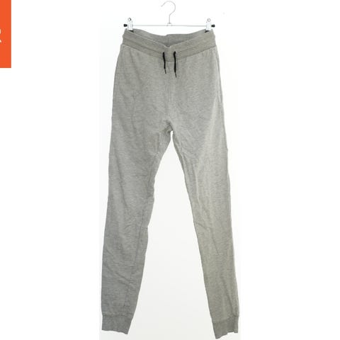 Et par mørkeblå sweatpants med snøre i taljen for justering. Bukserne har lynlåslommer på forsiden og en enkelt baglomme uden lynlås. Materialet virker komfortabelt og egnet til afslappet brug.