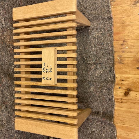 Håndlavet bænk i massivt træ med brændt og vokset finish. Bænken måler 200 cm i længden, 35 cm i bredden og 5 cm i tykkelsen. Bænken har justerbar metalben med en højde 40 cm. Egnet til brug som bænk