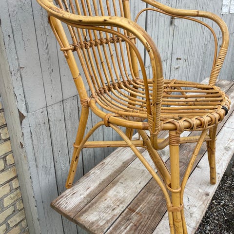 Antikke stole i forgyldte imiteret bambus med sort sæde og patina hist og pist, mål: B: 41 x D: 42 x H: 45 / 82 cm