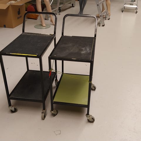 I blandet stand, men virker alle. 3 styk med fodbremse. Pris er pr. styk.