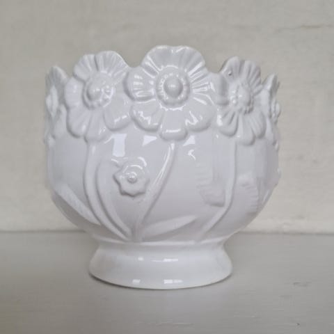 Fajance urtepotte, Engelsk fajance blomster krukke/potte, fra Portmeirion pottery stoke-on-trent. Potten er med motiv af blå roser.