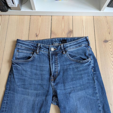 Straight Denim bukser i blå farve, størrelse 170, designet til drenge. Bukserne har et klassisk straight fit og er lavet i denim materiale. Velegnet til daglig brug. Har elastik i taljen, så linningen kan justeres.
