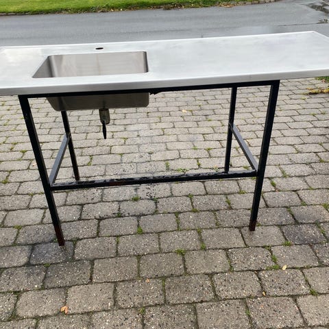 Rustfri vinkel bordplade med vask og armatur