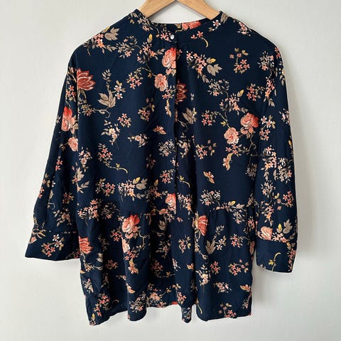 Med trekvartærmer og knapper øverst, læg foran der gør, at den falder så fint .