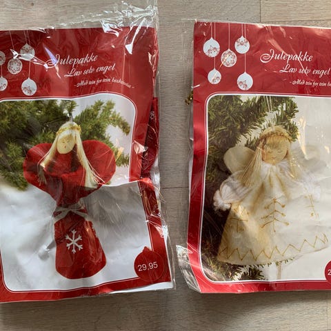 To helt nye poser med træklemmer med engle. Fem i hver pose. Perfekte til julebordet. Fra ikke-ryger og dyrefrit hjem.