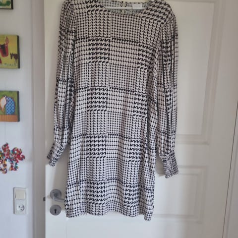 Kort kjole til hverdag el fest . Smuk mønster. Tag en body el mesh bluse under til efterår/ Vinter.