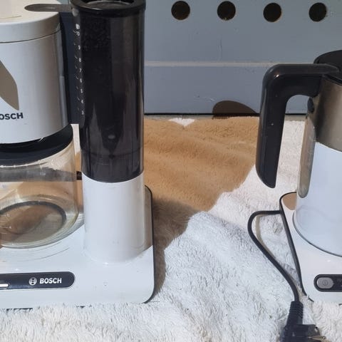 Bemærk at håndtaget er smeltet en smule, men ellers laver den rigtig god kaffe.