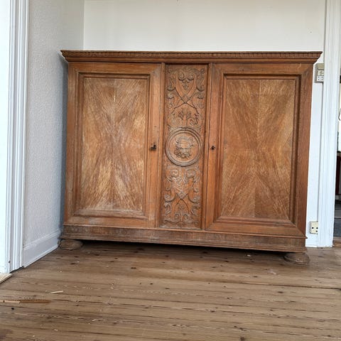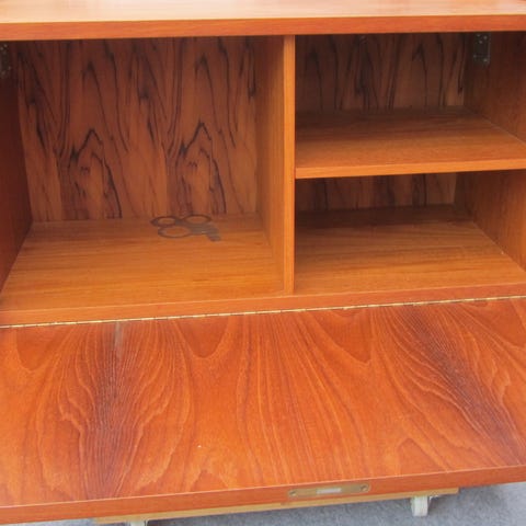 Der er enkelte brugsspor - og desværre et par mærker efter levering efter køb i sin tid. Bagpladen skal sømmes fast på nu - det er simpelt. Det vil stramme møblet op.