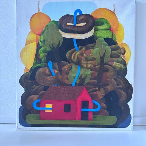 Mixed media, skumgummi,plast,lærred. 2003.