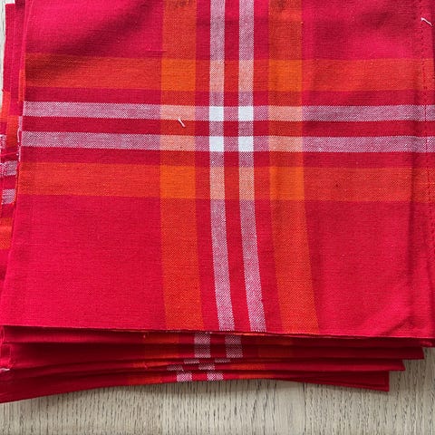 Æske med 4 flotte damask hør servietter fra irske Fingal. Ferskenfarvede og aldrig brugt. Stadig i originalemballagen.