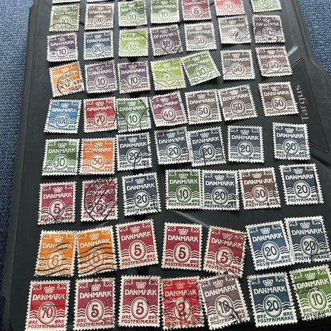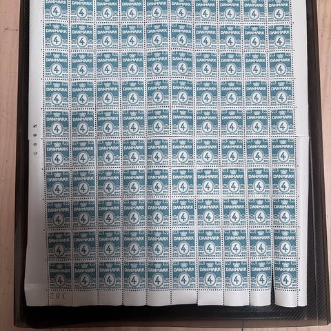 Gamle frimærker. Blå 4 øres ca 100 stk, og 8 øres i rød udgave ca 350 stk