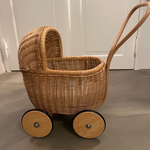 Flettet kurv til dukke med tæppe