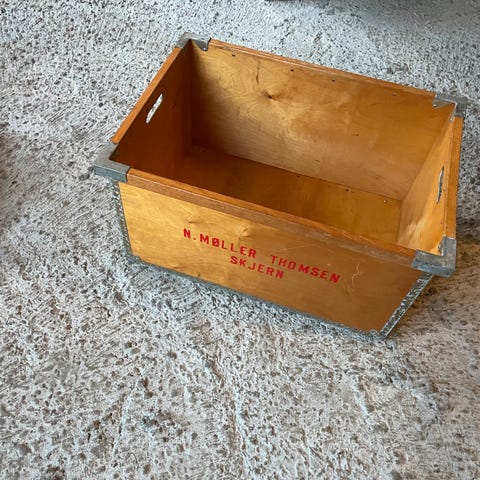 Gammel transportkasse / fragtkasse, antagelig fra 1950’erne, fra Magasin du Nord. Lavet af vulkan fiber med læderrem. 40 x 40 x 40 cm stor. Sender gerne men ikke med dba’s Fix Færdig. Køber betaler porto.