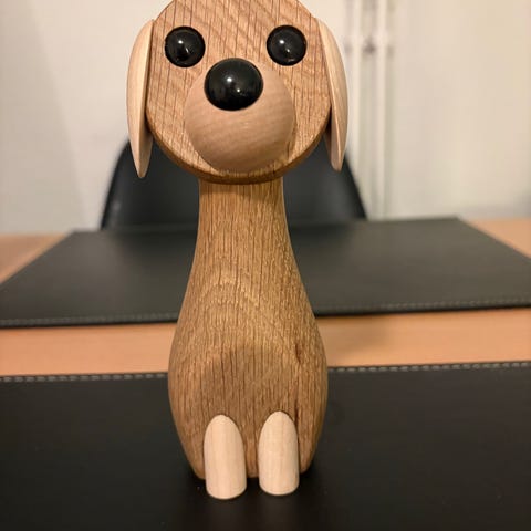 Sød Lønborg hund i teaktræ m glasøjne. Sveistrup løve kr 300. Hans Bølling vikinger 3 stk kr 300. Lønborg hund kr 300. Køb alle figurerne for kr 750