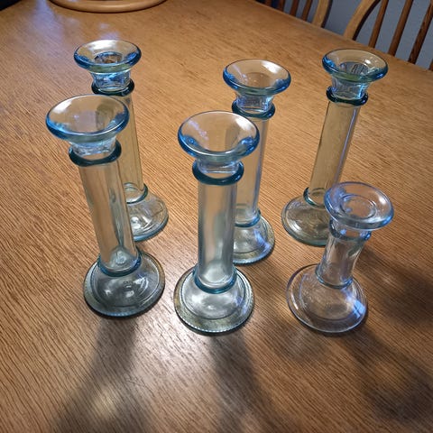 Sæt med 2 glasvase eller lysestager, blå og turkis