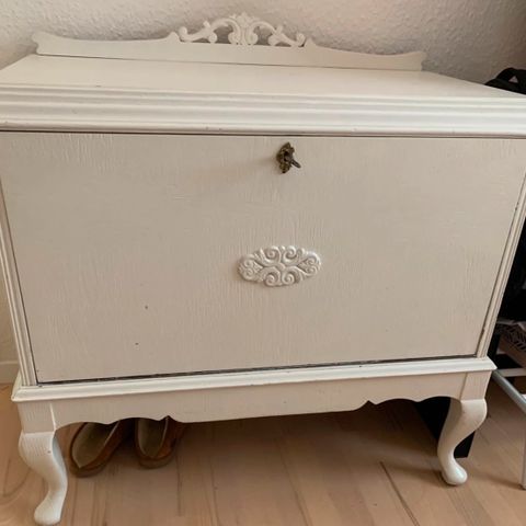Fint gammelt skab / kommode i magnony med indlagte finer motiver, som har en meget smuk marmorplade på toppen. Det er et arvestykke og har i hvert fald været i familiens eje i 100 år. Vi har desværre ikke plads til den mere. Mål: H 88 cm B. 113 cm D. 53 cm