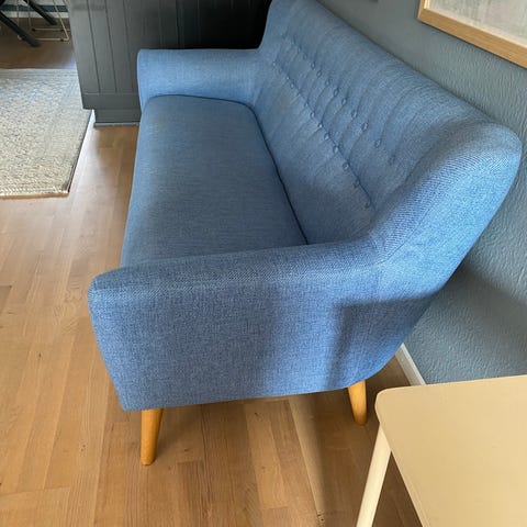 Blå/grå 2 og 3 personers sofaer. Fin stand med enkelte pletter. De kan ses på billederne. Ikke forsøgt renset, men tænker, at det er noget der kan renses væk. Den 3 personers er 206 cm i fuld længe. Længde ved sæderne er 170 cm. Sæde dybde er 55 cm. Siddehøjde er 40 cm. Højde fra ryg til gulv er 77 cm. Åbning fra gulv til nederste kan på sofaen er 15 cm. Den 2 personers er 150 cm i fuld længde. Længde ved sæderne 113 cm. Resten er det samme som den 3 personers.