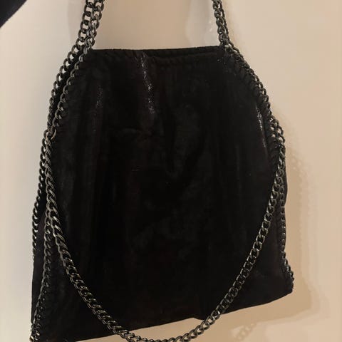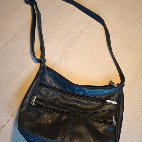 Tasken har justerbar strop, magnetlukning og lynlås.