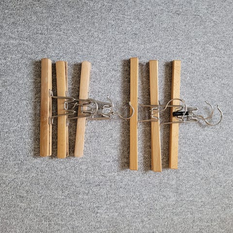 Bøjlerne er i god stand med lidt brugsspor, der er nogle få bøjler som har klister på fra et prismærke.