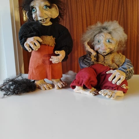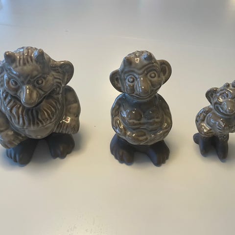Sød Krøllebølle familie, far, mor og 2 børn i keramik. Samlet pris for alle